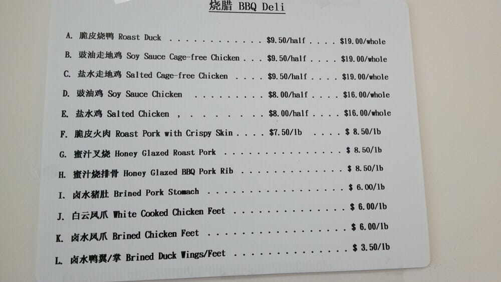 Introducing the menu at Lucky Bakery & BBQ, a hidden gem located in West Allis, WI, offering a unique fusion of Chinese bakery and barbecue specialties. Known for its delicious mooncakes and wide selection of sweet and savory treats, this spot is a must-visit for Asian food enthusiasts. The bakery serves up traditional Chinese pastries, including custard egg tarts and red bean paste mooncakes, perfect for special occasions like the Mid-Autumn Harvest Moon Festival. Additionally, Lucky Bakery & BBQ excels in its barbeque offerings, with succulent roasted duck, crispy pork, and tender pork knuckle stealing the show. The affordable prices and generous portions make it a favorite among locals, with the friendly owner adding a personal touch to the dining experience. Don't miss out on the Cantonese-style buns, full pig roast, and steamed BBQ pork buns – a true taste of authentic Chinese cuisine in the heart of Wisconsin.